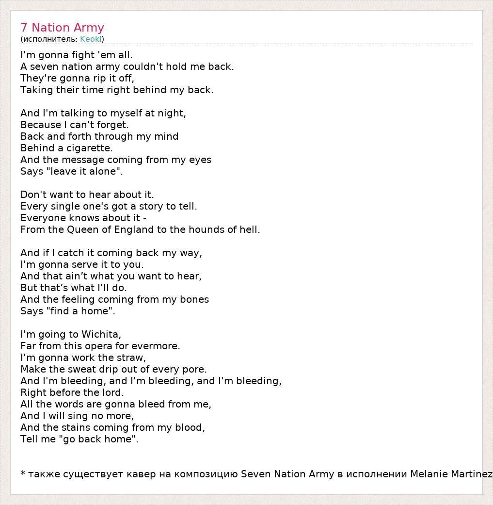 А как ты думаешь, о чем песня "7 Nation Army" ?