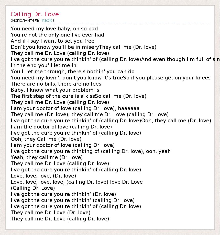 They call me (Dr. love), they call me Dr. Love (calling Dr. love)