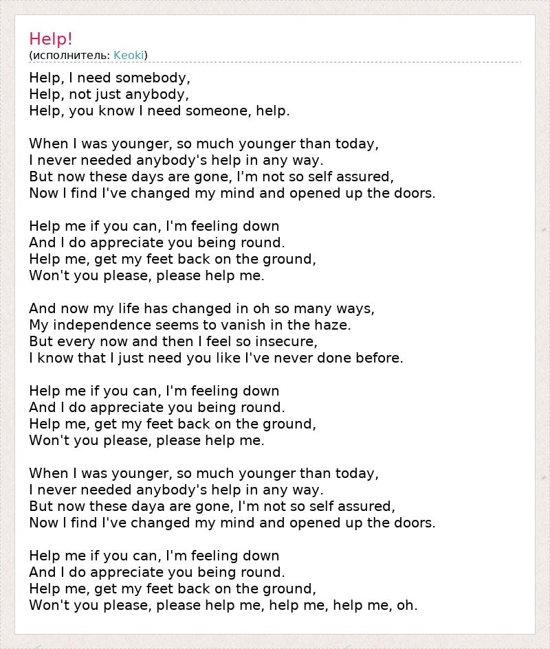 Help, you know I need someone, help.