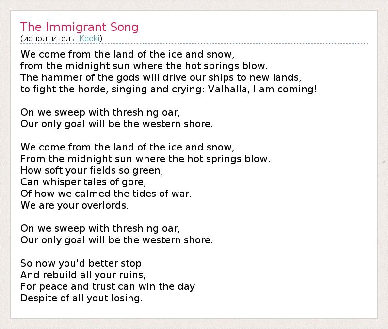 А как ты думаешь, о чем песня "The Immigrant Song" ?