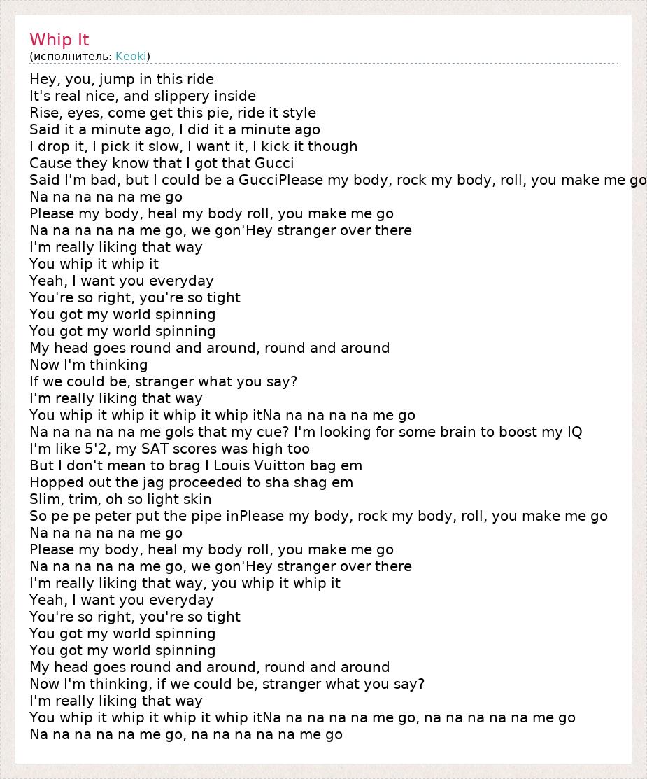 You whip it whip it whip it whip itNa na na na na me go, na na na na na me go