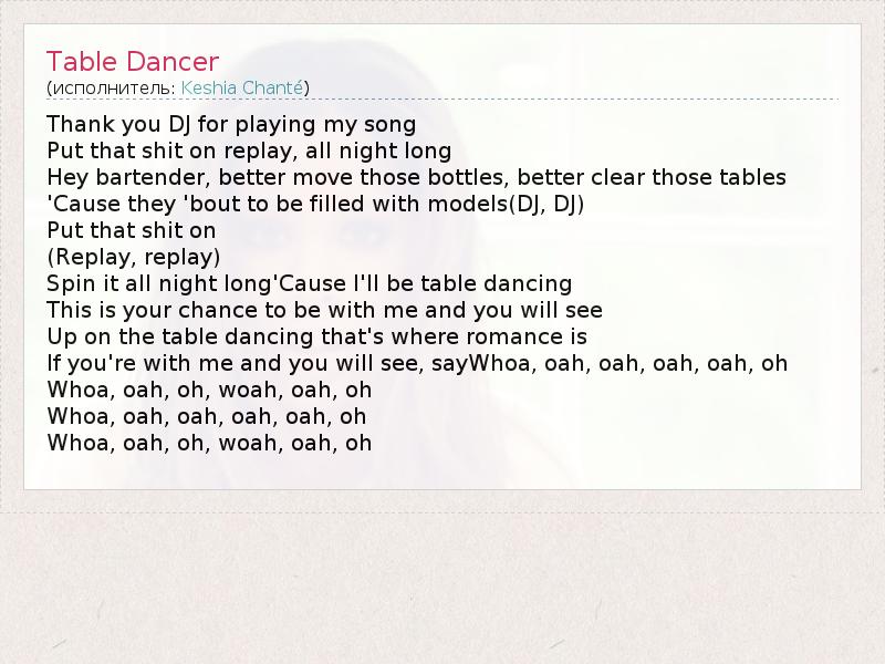 А как ты думаешь, о чем песня "Table Dancer" ?