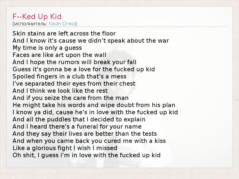 А как ты думаешь, о чем песня "F--Ked Up Kid" ?