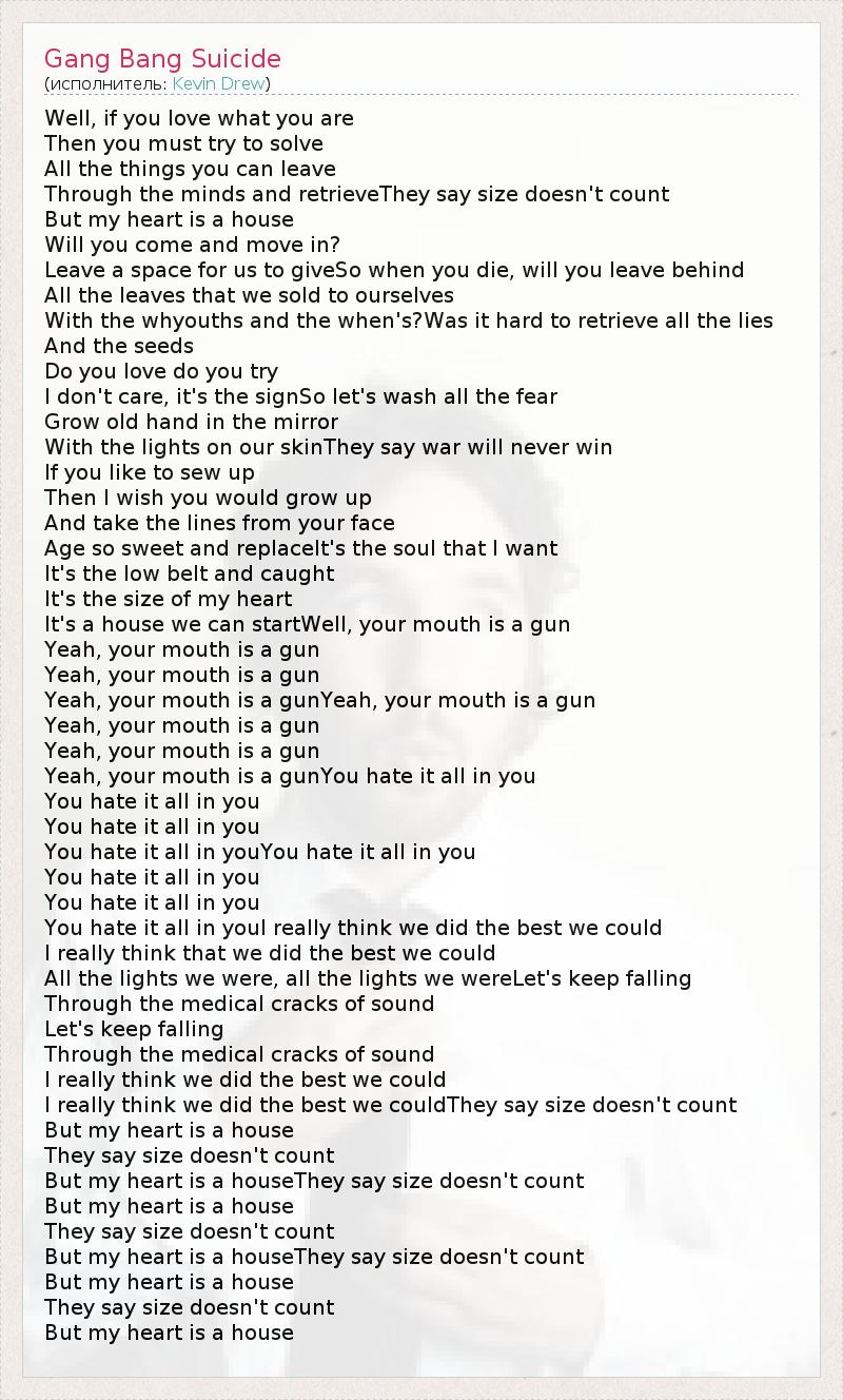 А как ты думаешь, о чем песня "Gang Bang Suicide" ?
