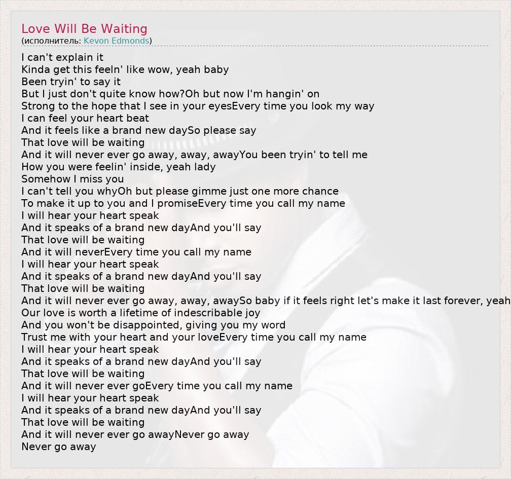 А как ты думаешь, о чем песня "Love Will Be Waiting" ?