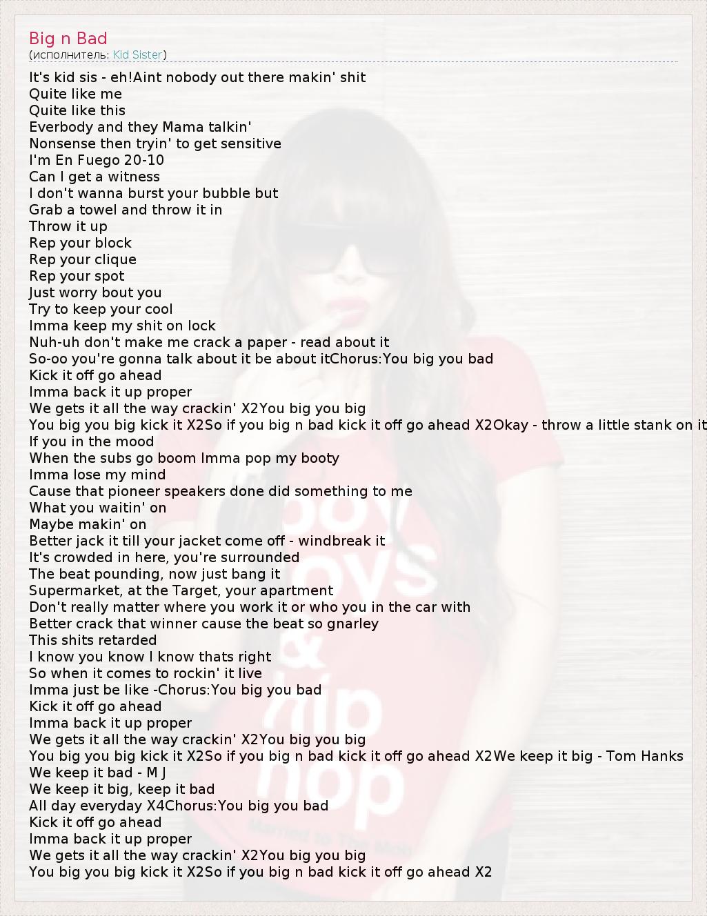 А как ты думаешь, о чем песня "Big n Bad" ?
