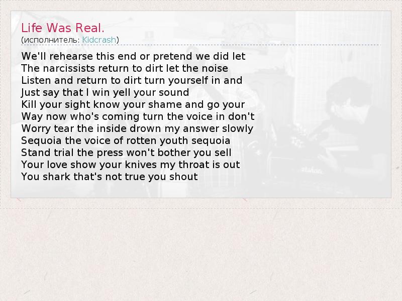 А как ты думаешь, о чем песня "Life Was Real." ?