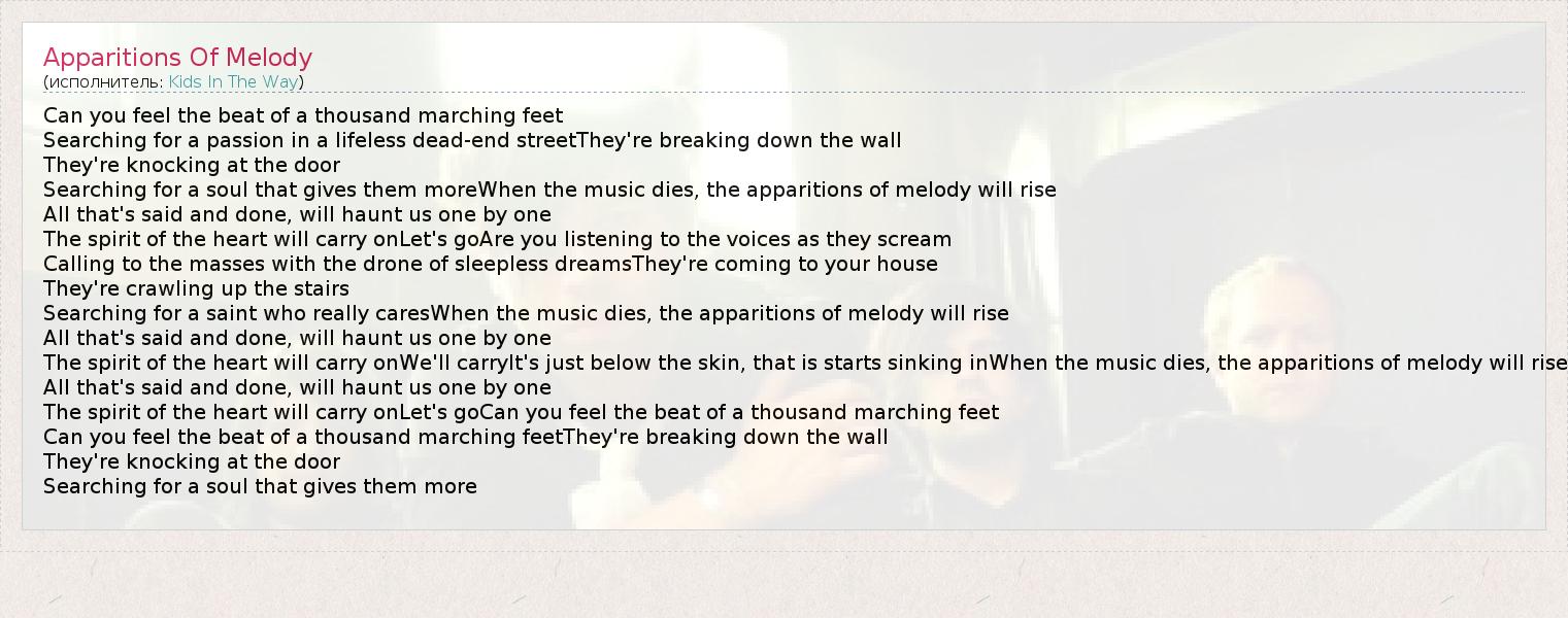 А как ты думаешь, о чем песня "Apparitions Of Melody" ?