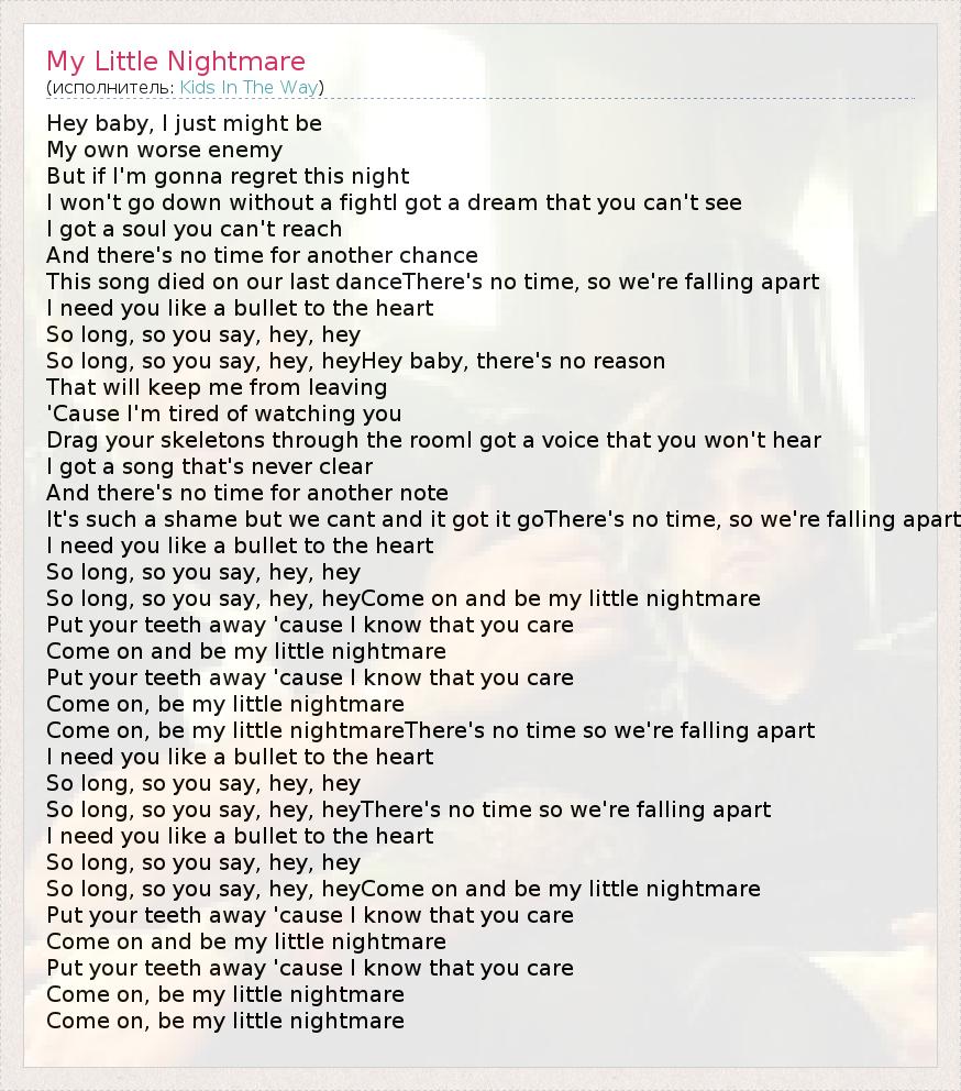 А как ты думаешь, о чем песня "My Little Nightmare" ?