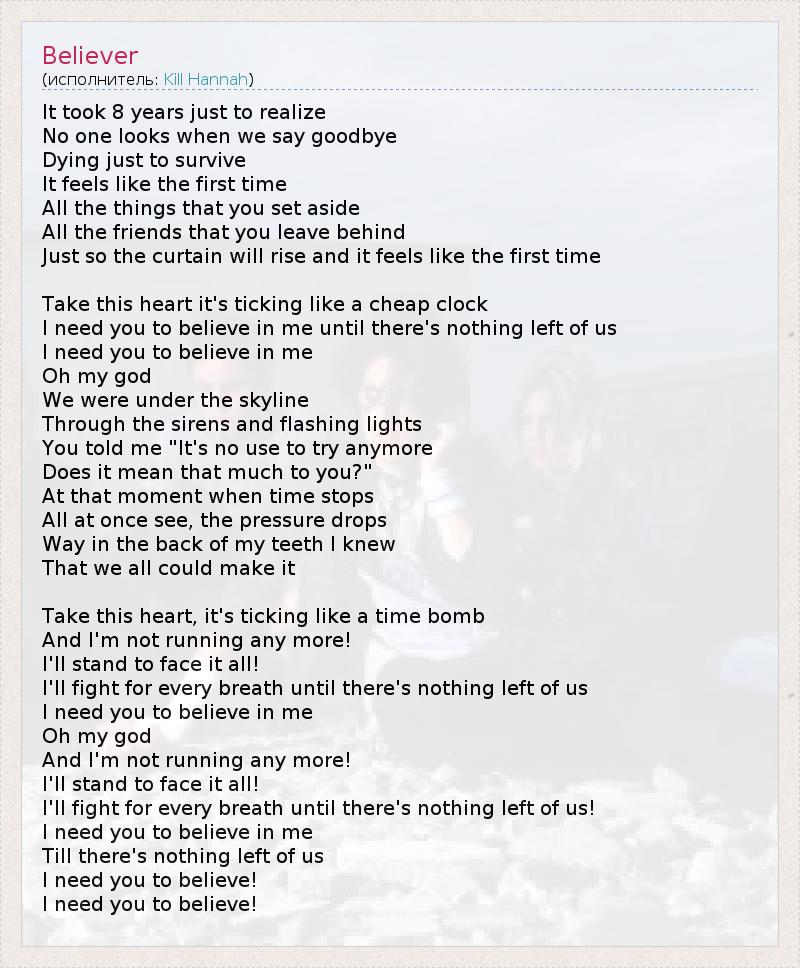 Это интересно:Kill Hannah – рок-группа из Чикаго, штат Иллинойс, в настоящее время подписавшая контракт с Atlantic Records. Kill Hannah была образована вокалистом и автором песен Мэтом Девайном в 1994 г. С 1996 по 2003 Kill Hannah независимо выпустили 8 синглов и номерных альбомов, все из которых были быстро распроданы многочисленными тиражами.Бывшая девушка вокалиста Мэта – тёзка группы. Они встретились в Государственном... продолжение