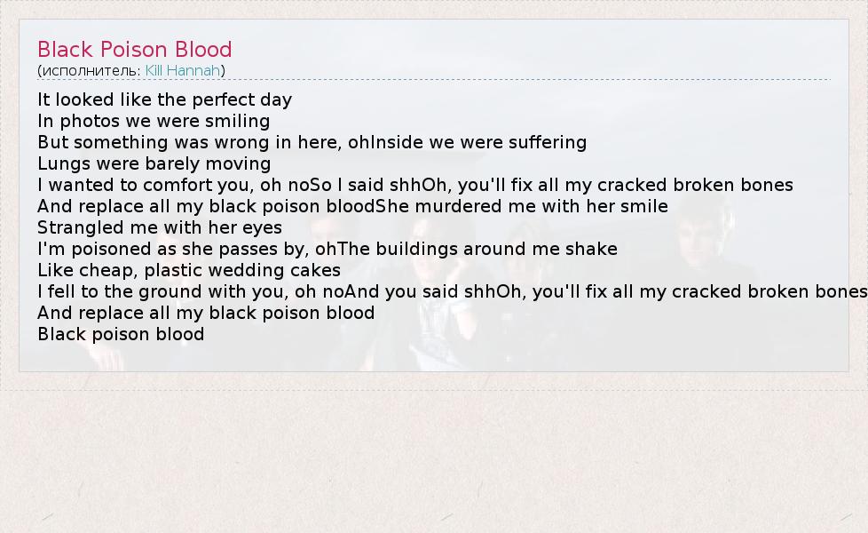 А как ты думаешь, о чем песня "Black Poison Blood" ?
