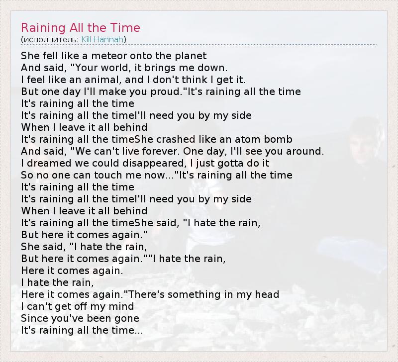 А как ты думаешь, о чем песня "Raining All the Time" ?