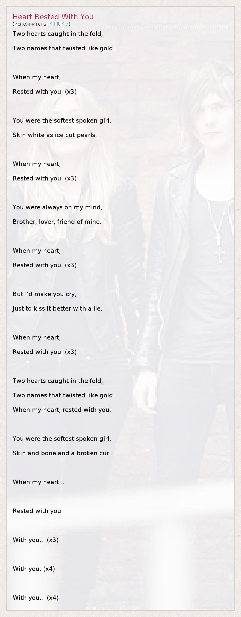 А как ты думаешь, о чем песня "Heart Rested With You" ?