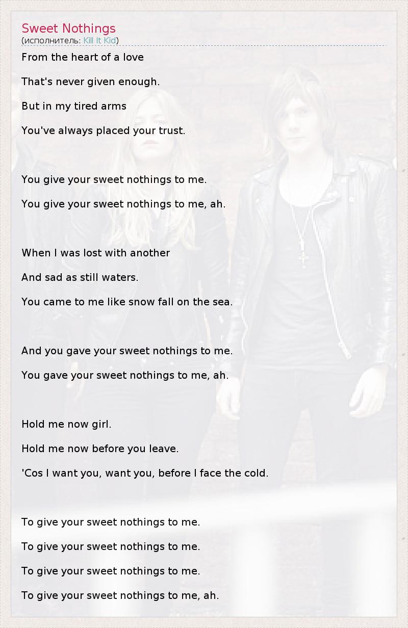 А как ты думаешь, о чем песня "Sweet Nothings" ?
