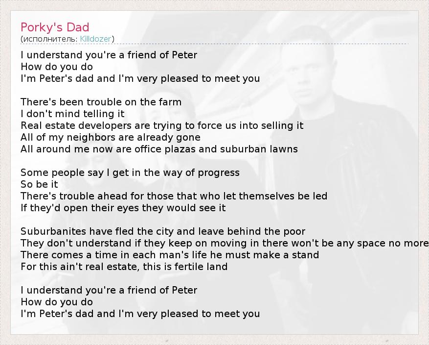 А как ты думаешь, о чем песня "Porky's Dad" ?