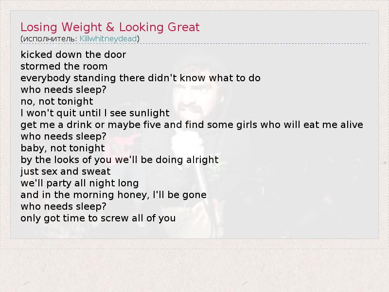 А как ты думаешь, о чем песня "Losing Weight & Looking Great" ?