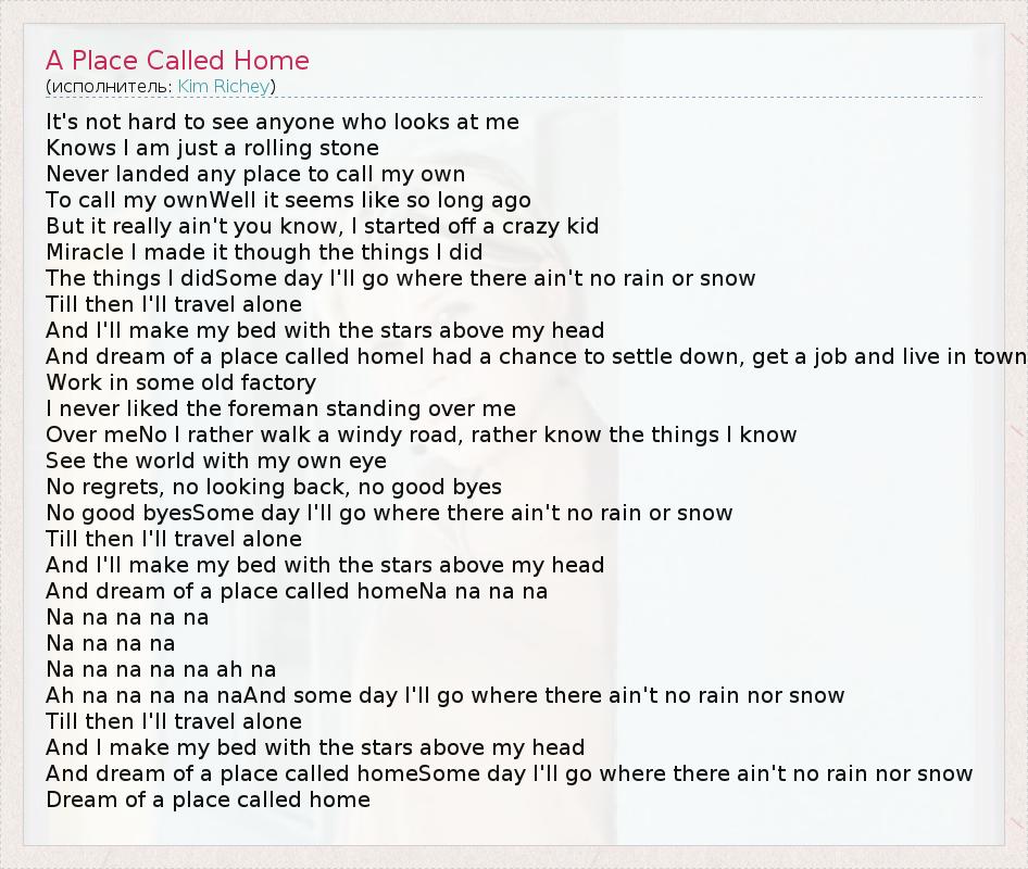 А как ты думаешь, о чем песня "A Place Called Home" ?