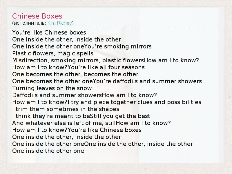 А как ты думаешь, о чем песня "Chinese Boxes" ?