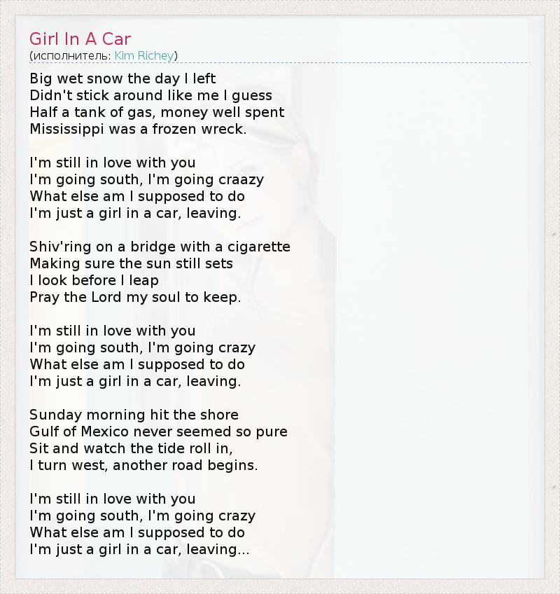 А как ты думаешь, о чем песня "Girl In A Car" ?