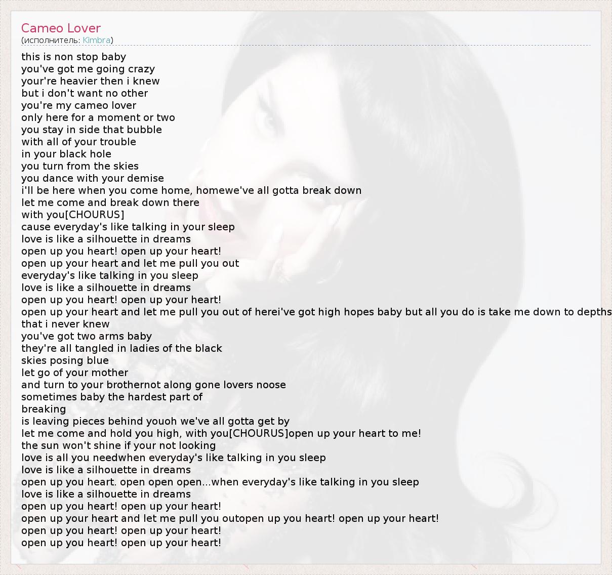 А как ты думаешь, о чем песня "Cameo Lover" ?