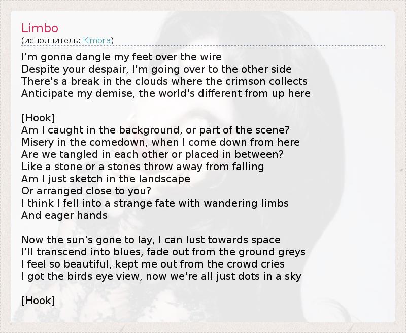 Это интересно:Кимбра Джонсон (род. 27 марта 1990 г.) - певица и автор песен родом из Новой Зеландии. В детстве Кимбра не очень увлекалась музыкой, но в возрасте 10 лет начала писать первые песни. В 12 лет отец подарил ей гитару и после нескольких лет занятий она начала выступать при этом, никогда не занимаясь вокалом. Учась в школе, она стала известна, как певица после участия в конкурсе национальных... продолжение