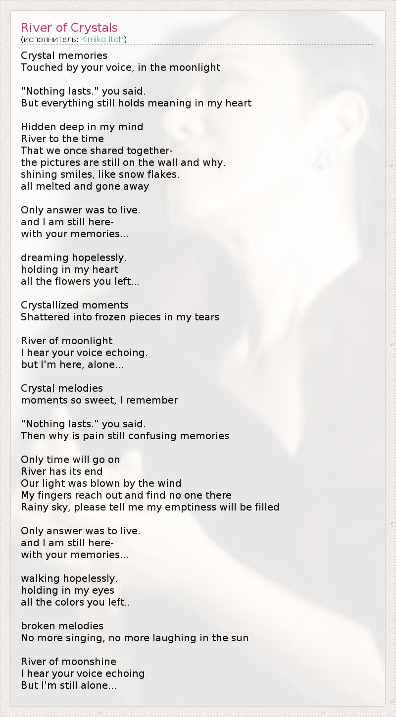 А как ты думаешь, о чем песня "River of Crystals" ?