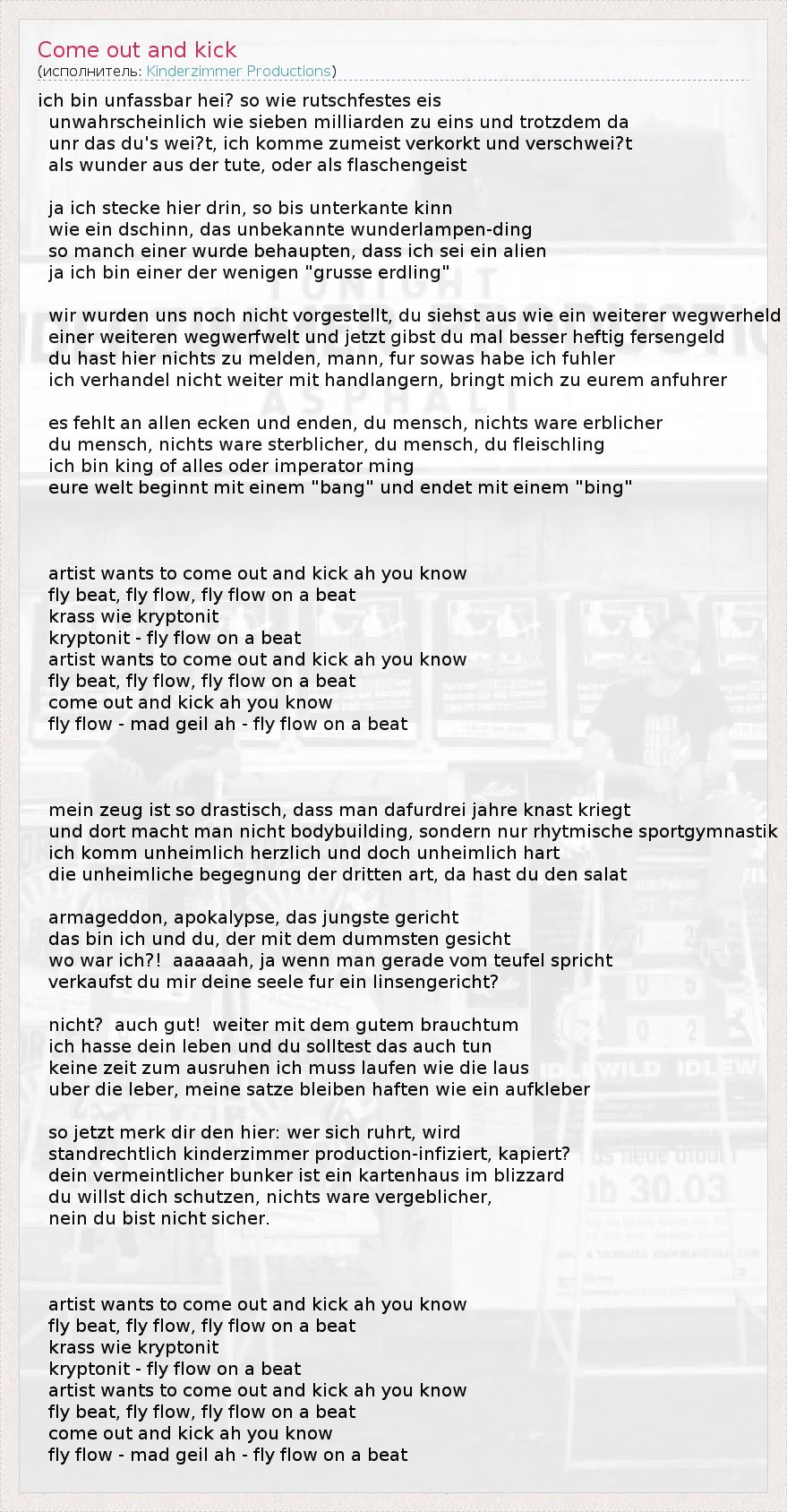 А как ты думаешь, о чем песня "Come out and kick" ?