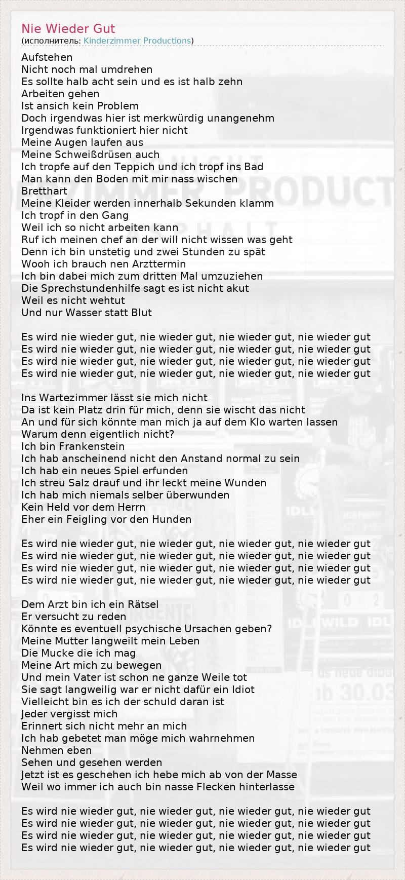А как ты думаешь, о чем песня "Nie Wieder Gut" ?
