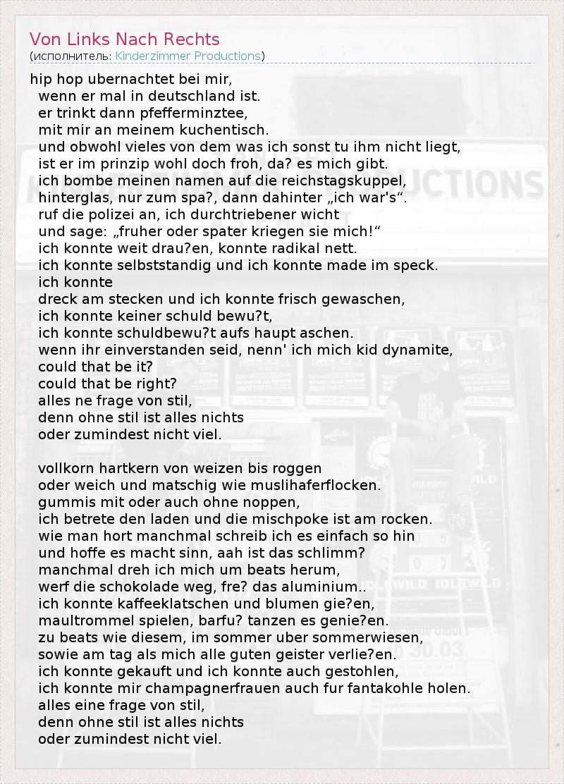 А как ты думаешь, о чем песня "Von Links Nach Rechts" ?
