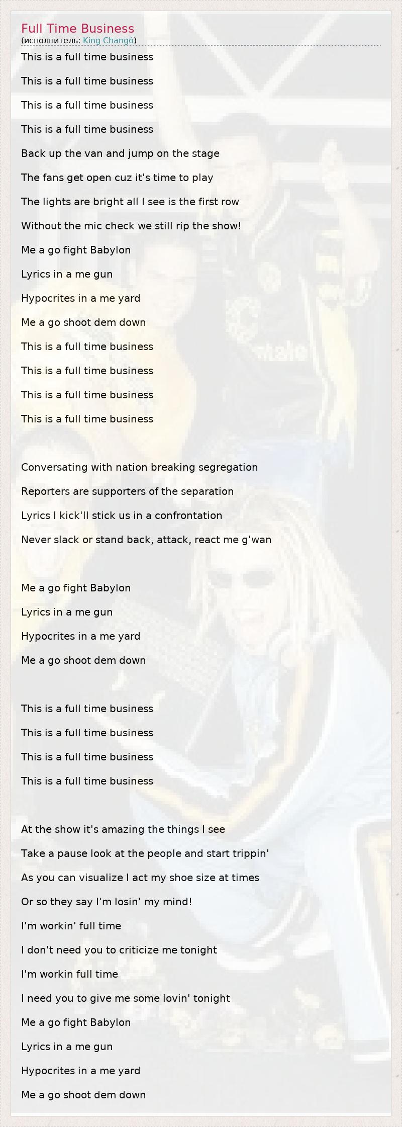 А как ты думаешь, о чем песня "Full Time Business" ?