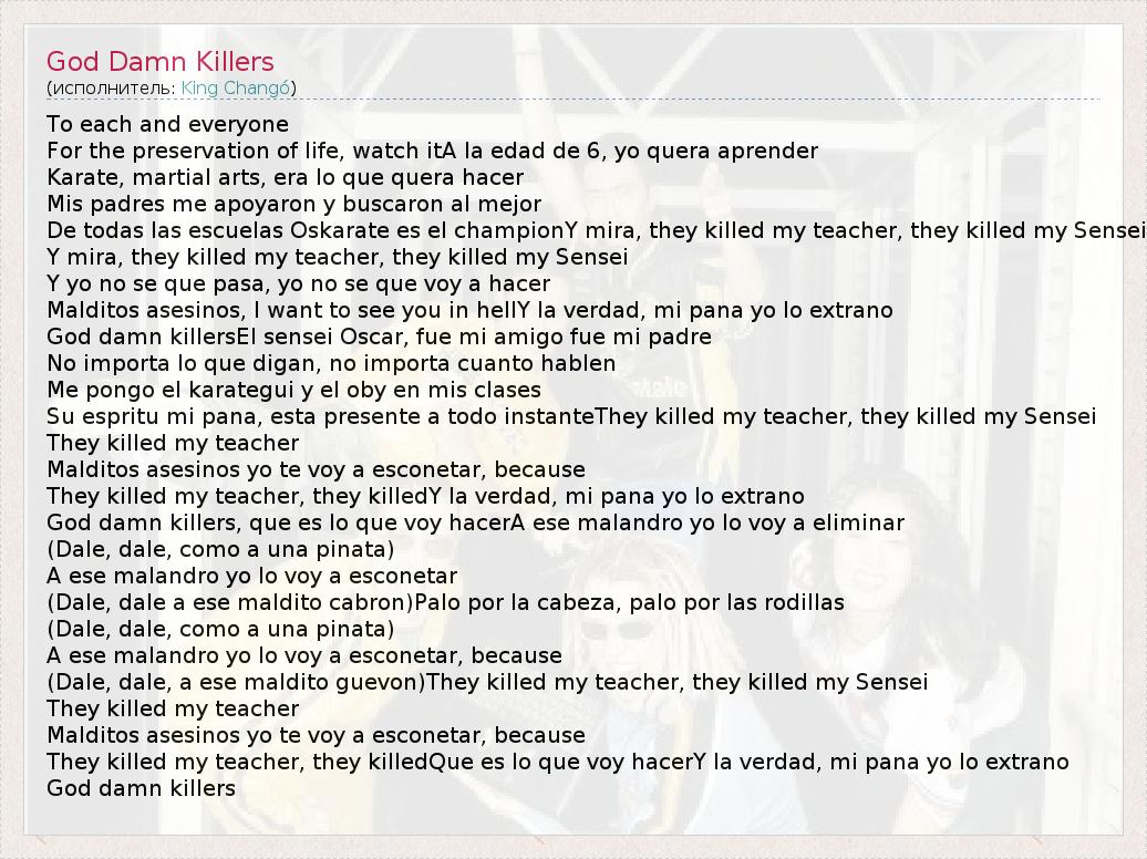 God damn killers, que es lo que voy hacerA ese malandro yo lo voy a eliminar