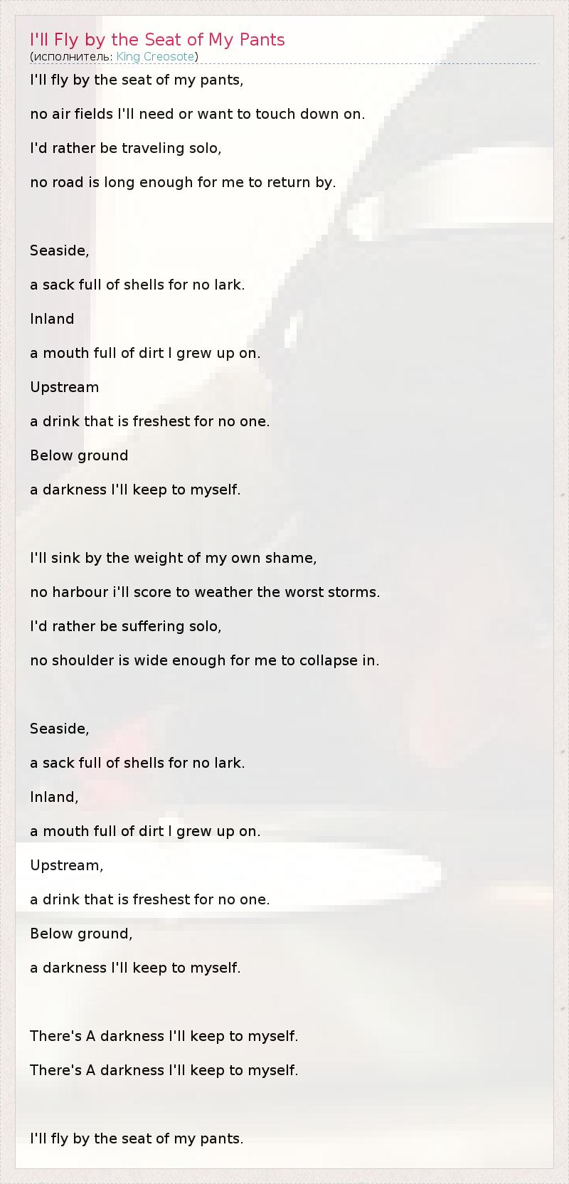 А как ты думаешь, о чем песня "I'll Fly by the Seat of My Pants" ?