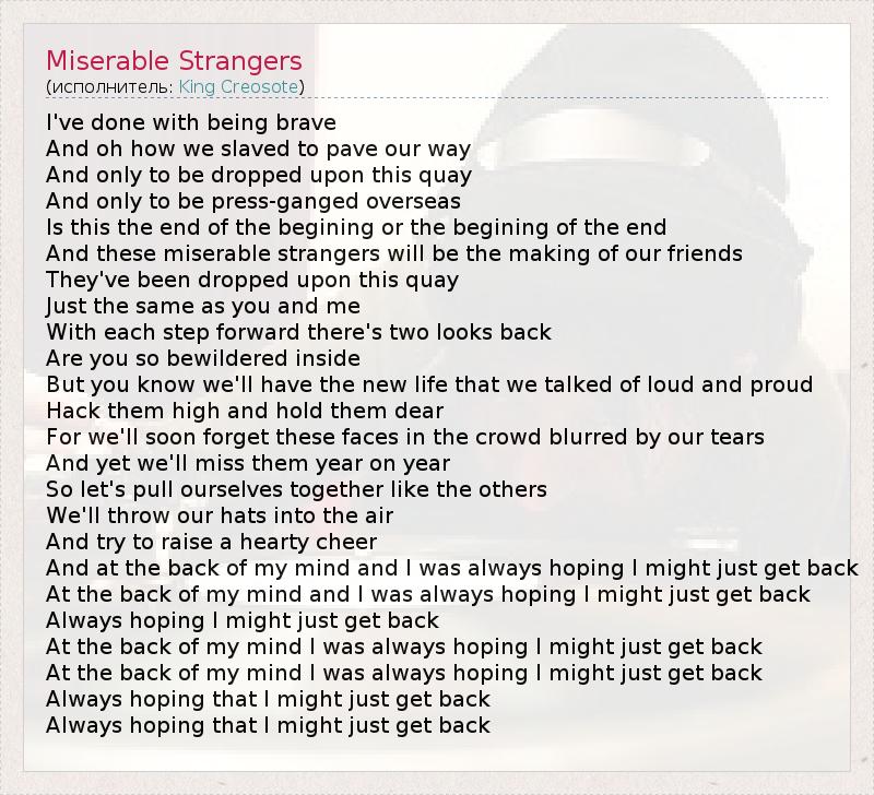 А как ты думаешь, о чем песня "Miserable Strangers" ?