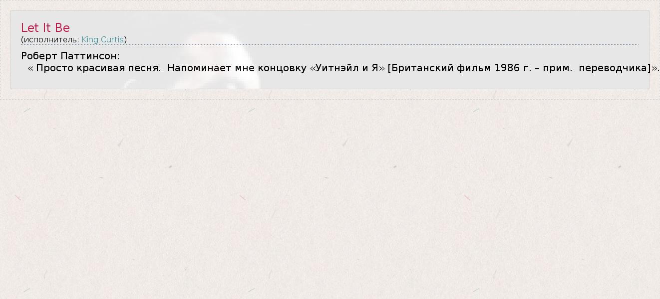 Роберт Паттинсон: « Просто красивая песня. Напоминает мне концовку «Уитнэйл и Я» [Британский фильм 1986 г. – прим. переводчика]».