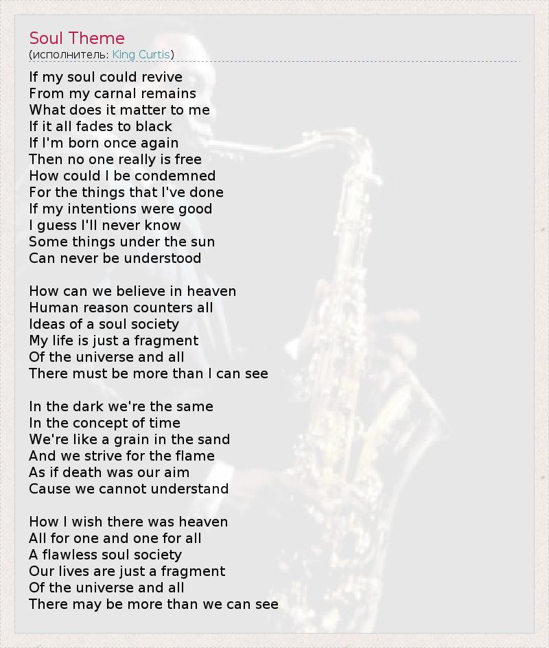 А как ты думаешь, о чем песня "Soul Theme" ?