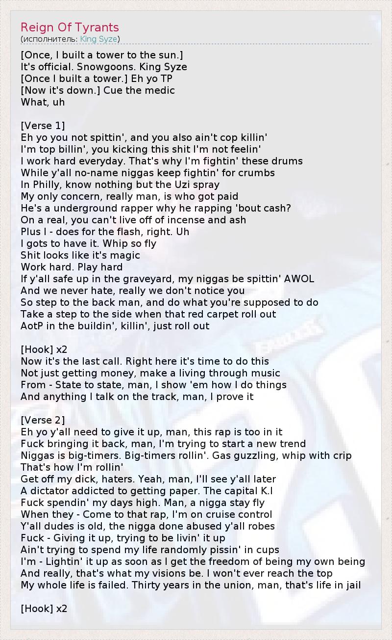 А как ты думаешь, о чем песня "Reign Of Tyrants" ?