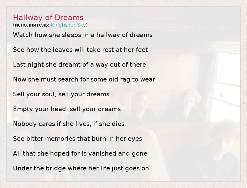 А как ты думаешь, о чем песня "Hallway of Dreams" ?
