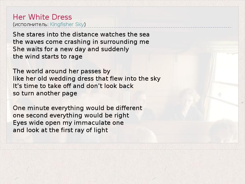 А как ты думаешь, о чем песня "Her White Dress" ?