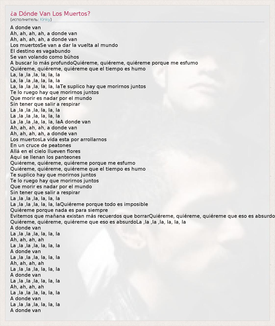А как ты думаешь, о чем песня "¿a Dónde Van Los Muertos?" ?