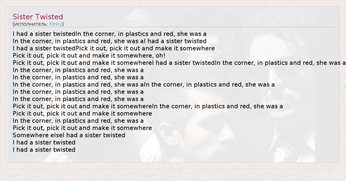 А как ты думаешь, о чем песня "Sister Twisted" ?