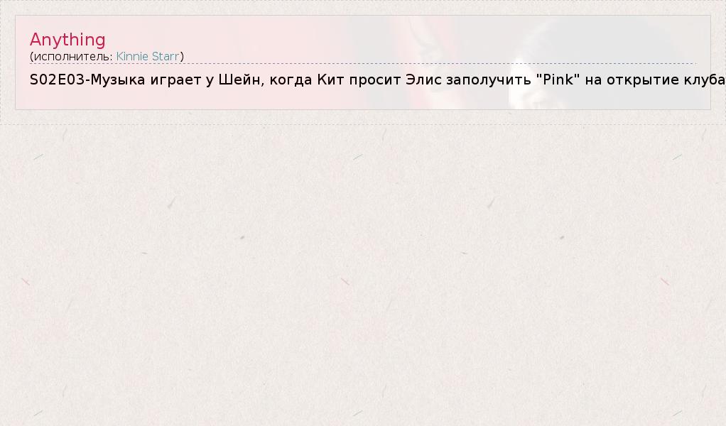 S02E03-Музыка играет у Шейн, когда Кит просит Элис заполучить "Pink" на открытие клуба