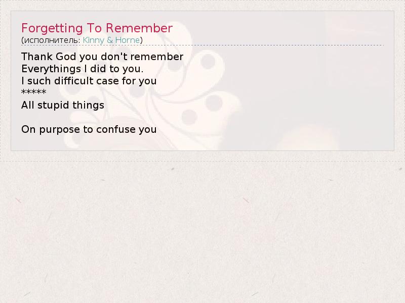 А как ты думаешь, о чем песня "Forgetting To Remember" ?