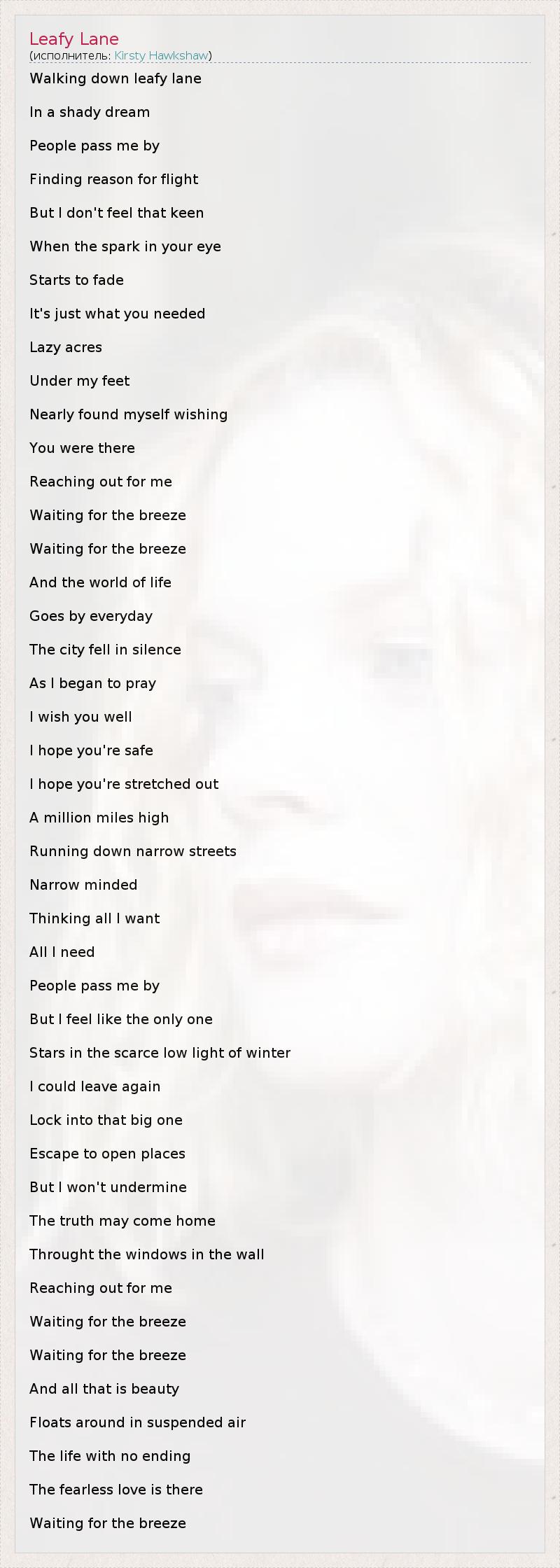 А как ты думаешь, о чем песня "Leafy Lane" ?
