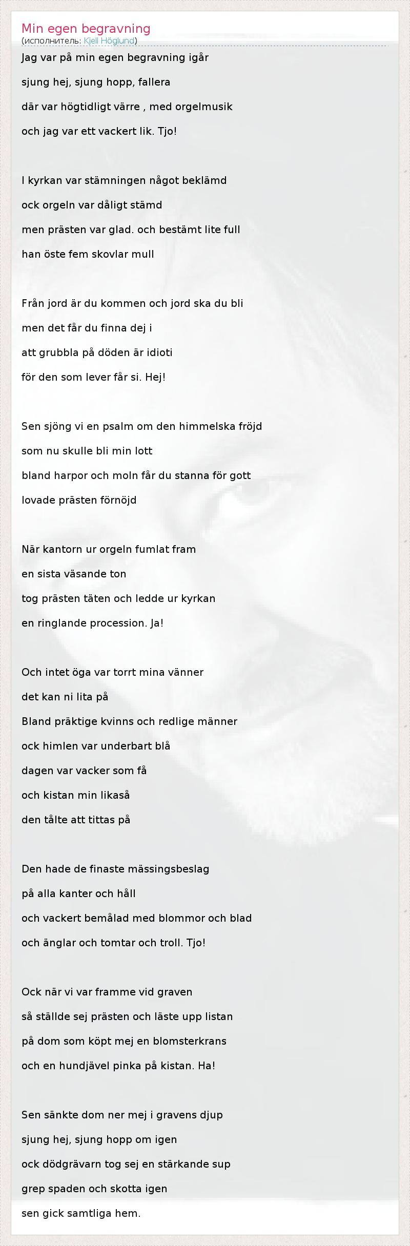 А как ты думаешь, о чем песня "Min egen begravning" ?