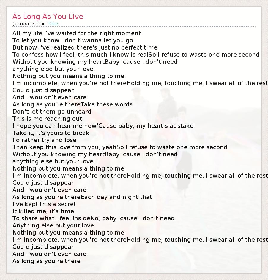 А как ты думаешь, о чем песня "As Long As You Live" ?