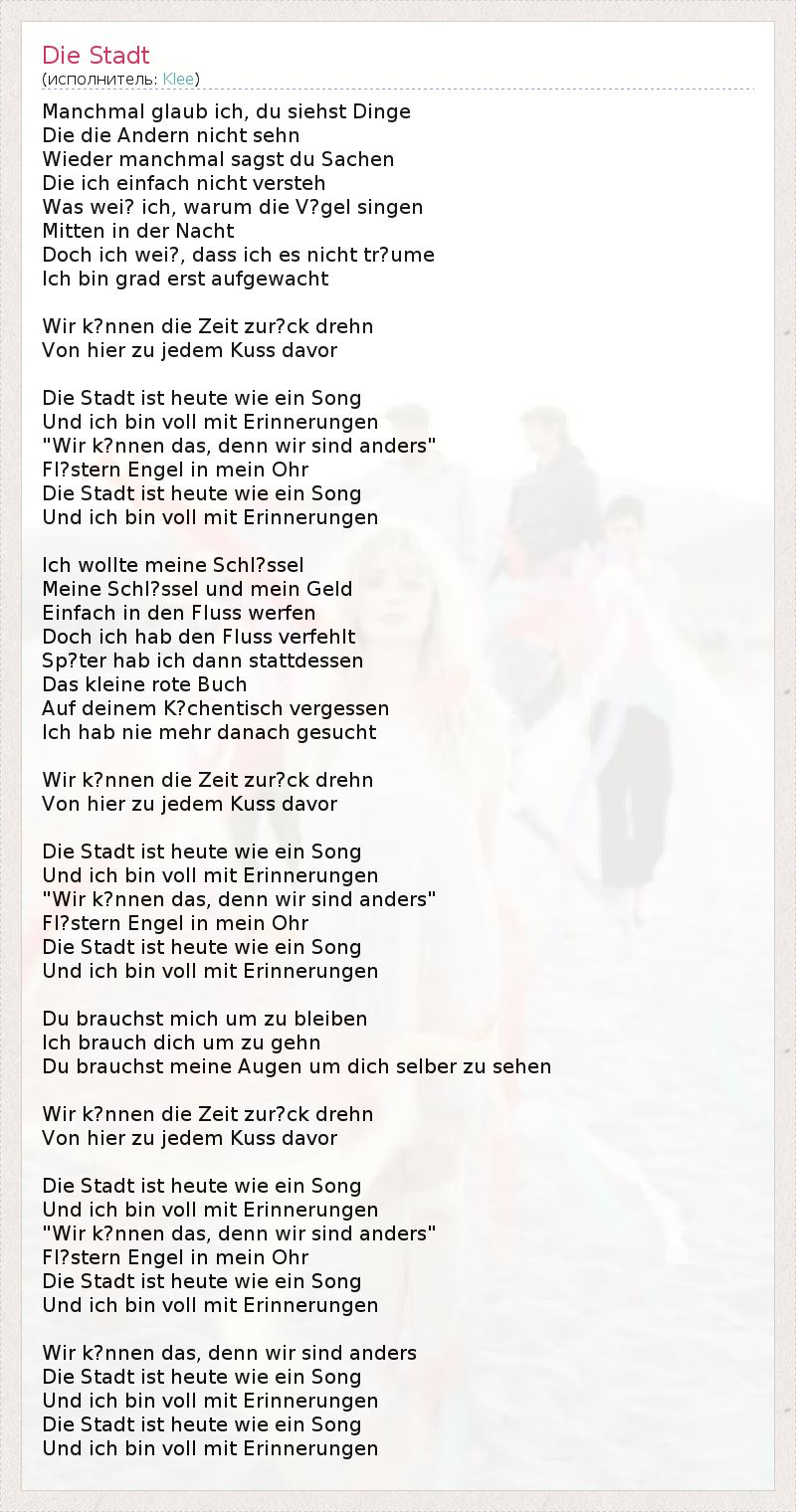 А как ты думаешь, о чем песня "Die Stadt" ?