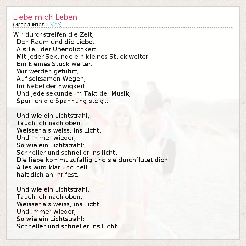 А как ты думаешь, о чем песня "Liebe mich Leben" ?