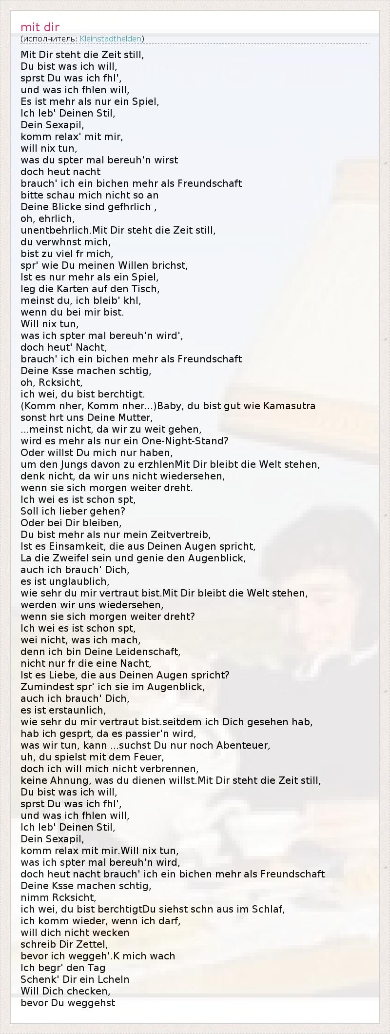 keine Ahnung, was du dienen willst.Mit Dir steht die Zeit still,