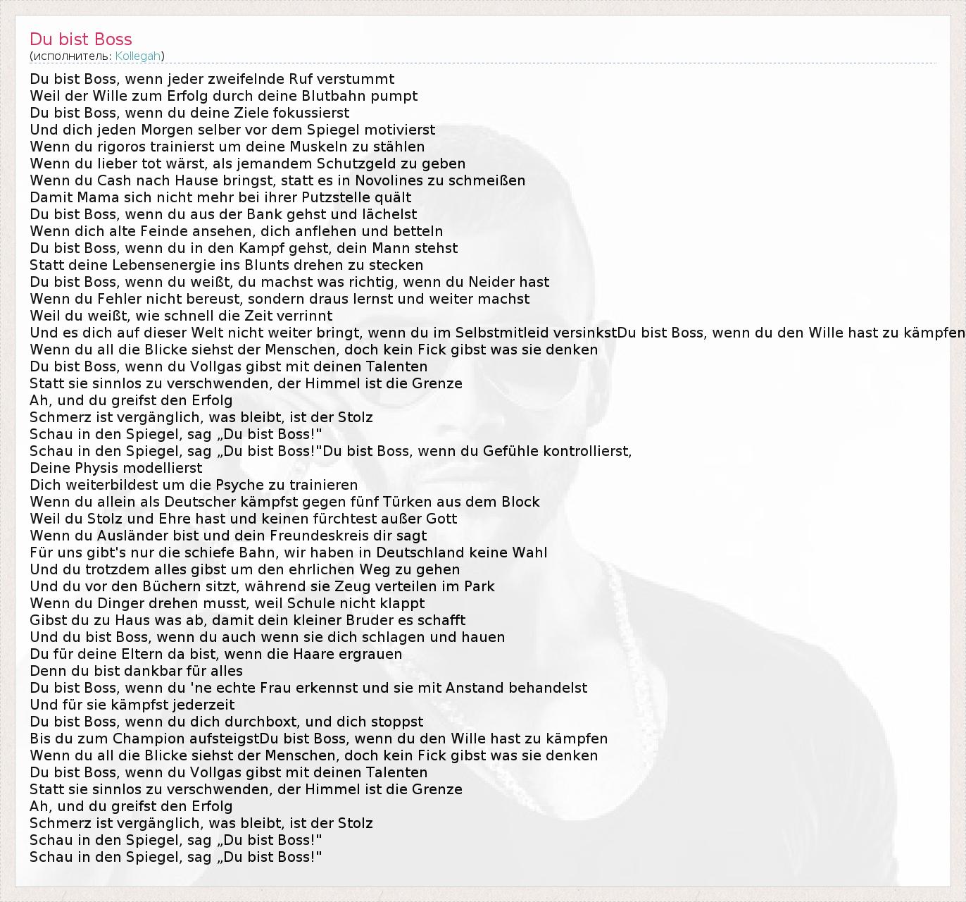 А как ты думаешь, о чем песня "Du bist Boss" ?