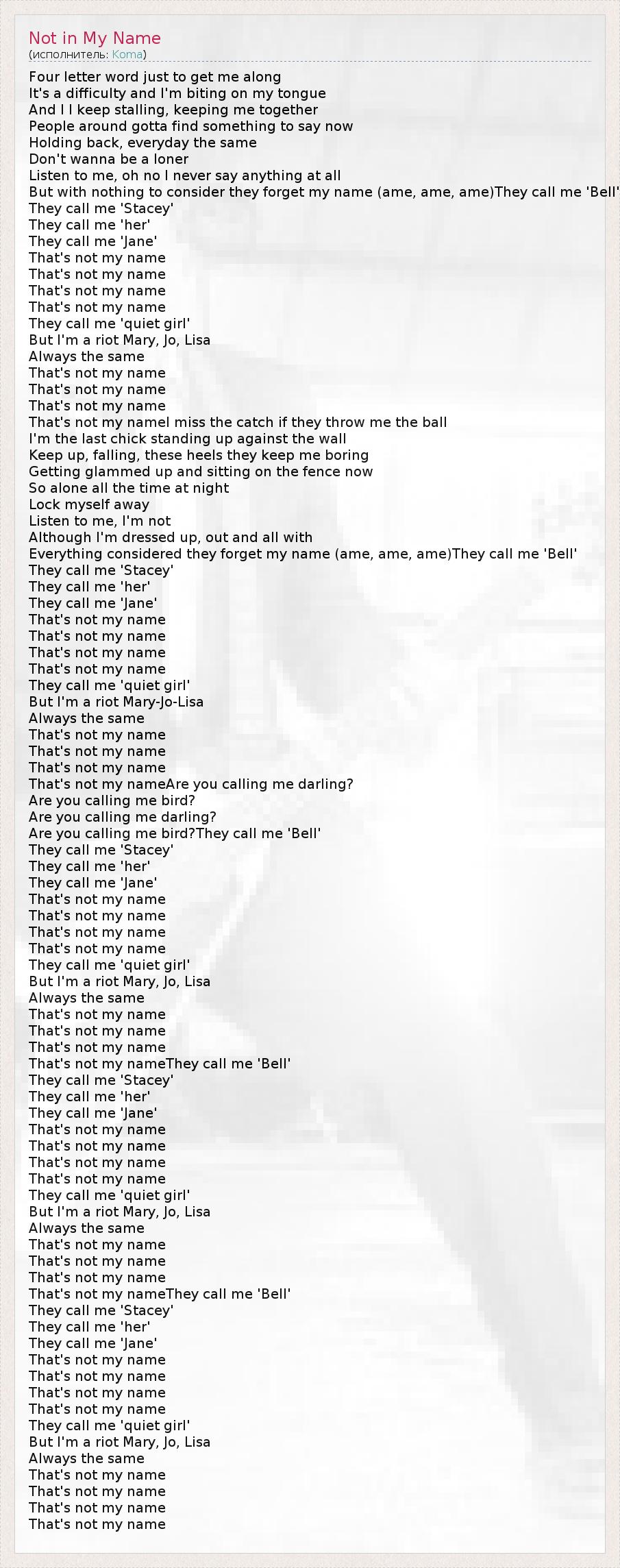 А как ты думаешь, о чем песня "Not in My Name" ?